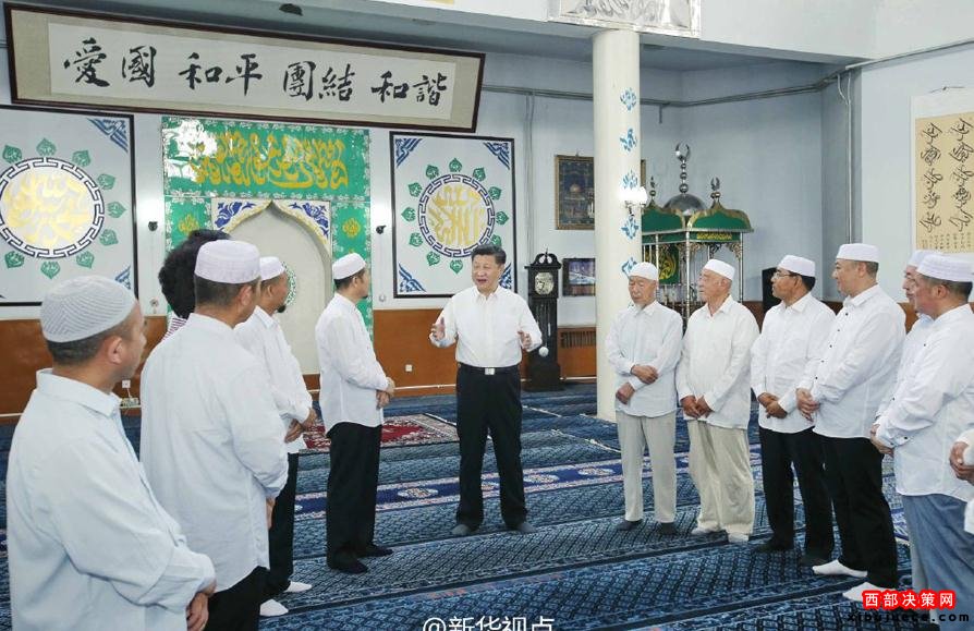 新華網(wǎng)北京7月19日電習(xí)近平總書記19日上午來到寧夏回族自治區(qū)銀川市新城清真寺了解宗教活動(dòng)開展情況。在禮拜大殿,習(xí)近平與寧夏伊斯蘭教界人士親切交流,通過他們向廣大穆斯林群眾致以親切問候和良好祝愿。習(xí)近平說,我國(guó)的各民族和宗教是在5000多年的文明史中孕育發(fā)展起來的,只有落地生根才能生生不息。習(xí)近平希望大家繼續(xù)發(fā)揚(yáng)愛國(guó)愛教傳統(tǒng),在脫貧致富奔小康的道路上發(fā)揮積極作用。在場(chǎng)的伊斯蘭教界人士表示,將認(rèn)真貫徹落實(shí)全國(guó)宗教工作會(huì)議精神,既念好古蘭經(jīng),又念好致富經(jīng),為國(guó)家發(fā)展?fàn)I造和諧的環(huán)境。(文字:新華社記者霍小光,攝影:新華社記者鞠鵬、李濤據(jù)新華社“新華視點(diǎn)”微博報(bào)道)