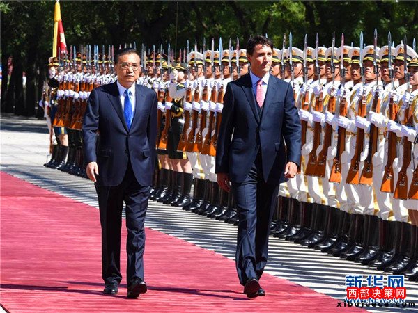 8月31日,國務院總理李克強在北京人民大會堂同來華進行正式訪問并出席二十國集團領(lǐng)導人杭州峰會的加拿大總理特魯多舉行會談。這是會談前,李克強在人民大會堂東門外廣場為特魯多舉行歡迎儀式。