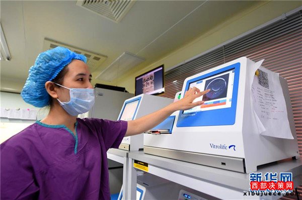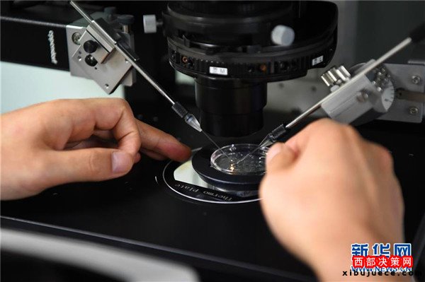 重慶市遺傳與生殖研究所實(shí)驗(yàn)室工作人員在顯微鏡下對(duì)胚胎進(jìn)行操作