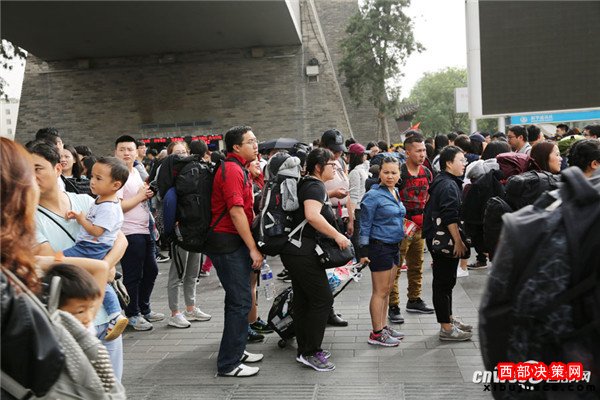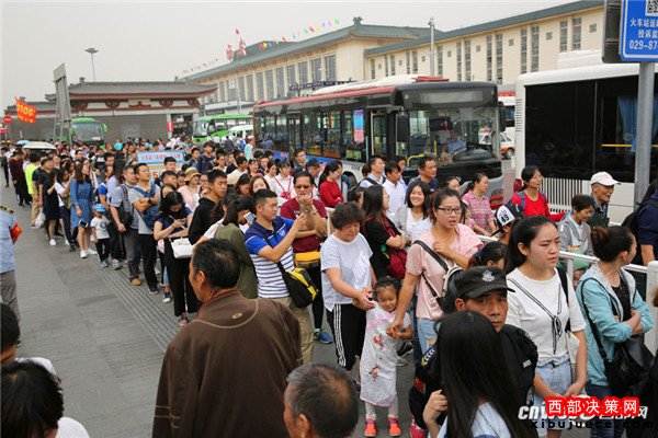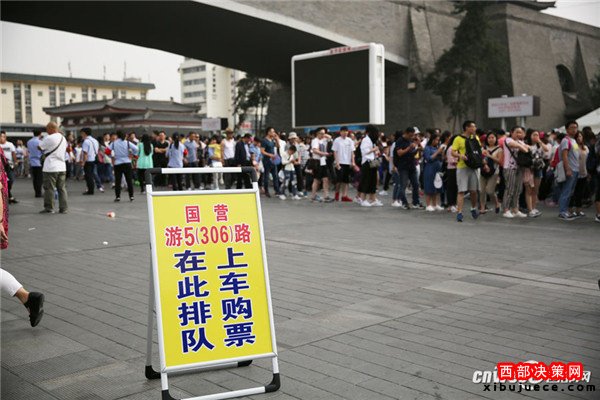 記者魏永賢10月4日,西安火車站廣場(chǎng)發(fā)往兵馬俑的游5(306)公交一輛接一輛無(wú)間隔發(fā)出,但等候上車的游客隊(duì)伍還是排了幾百米長(zhǎng),一名就要上車的游客說(shuō),他排了1個(gè)多小時(shí)。