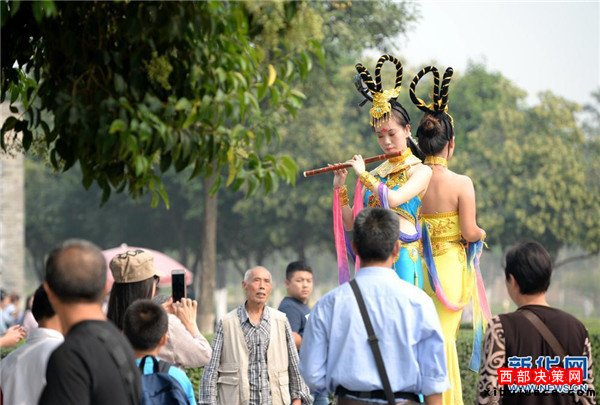 "活體雕塑"亮相大明宮遺址 為游客展現唐代風貌