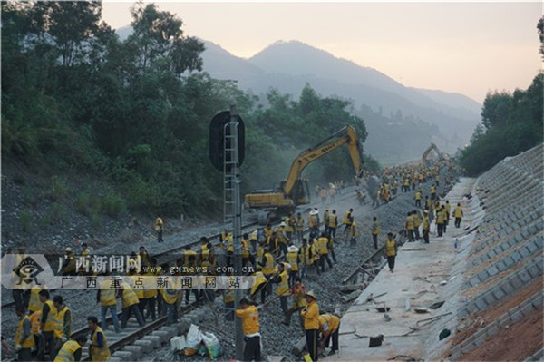 據(jù)了解,黎湛鐵路電氣化改造工程貴港(根竹)至玉林段需要進(jìn)行小半徑曲線改造的路段總計(jì)52處。由于是在既有線上改造,需要運(yùn)輸和施工兼顧,改造難度巨大。為確保運(yùn)輸和施工雙安全,南寧鐵路局制定實(shí)施了“夜間封閉施工、白天開(kāi)放行車(chē)”的工作制度。同時(shí),成立施工辦公室對(duì)改造工程進(jìn)行統(tǒng)籌指導(dǎo),堅(jiān)持每周二、四組織相關(guān)單位和部門(mén)召開(kāi)合署辦公會(huì)議,聯(lián)合審定施工方案及卡控措施,及時(shí)協(xié)調(diào)解決結(jié)合部問(wèn)題,最大限度為施工創(chuàng)造條件。