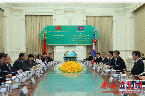 會談后,兩國領(lǐng)導(dǎo)人共同見證了外交、共建“一帶一路”、產(chǎn)能合作、投資、水利、新聞、海洋等領(lǐng)域多項雙邊合作文件的簽署,并共同出席金邊中國文化中心揭牌儀式。