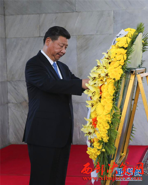 會談前,習(xí)近平向柬埔寨獨立紀(jì)念碑獻(xiàn)花圈。