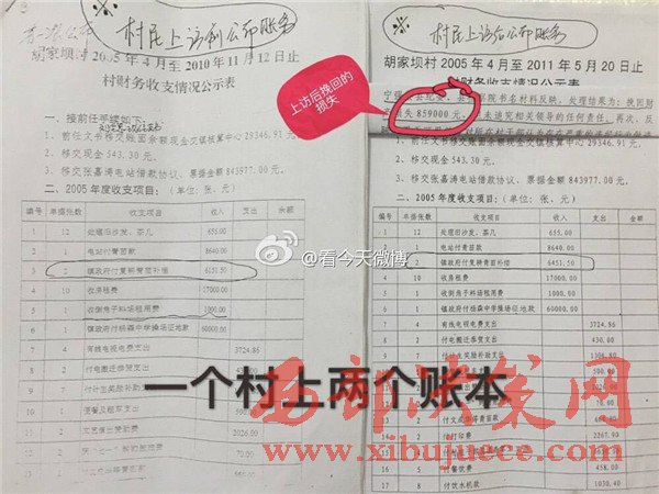 據(jù)實名舉報材料了解,早在2011年5月16日,經(jīng)群眾上訪,寧強縣縣紀委、縣檢察院就對黨支部書記劉全忠作出過處理,挽回財產損失859000元,但并未追究其法律責任。從胡家壩村公布的賬目來看,村民上訪前和上訪后僅“鎮(zhèn)政府付復耕青苗補償”單這一款項就有300元的出入。一個村子竟然存在兩本財政收支賬目,到底哪本賬才是胡家壩村真正的財政收支賬目呢?為什么要做兩本性質相同的賬?會不會該村還有第三本賬?