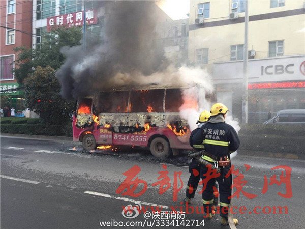 西安一公交車(chē)今晨著火大火已被撲滅無(wú)人員傷亡