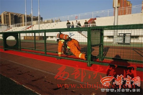 負(fù)重攀登10樓  榆林市消防大比武130余名鐵漢炫技