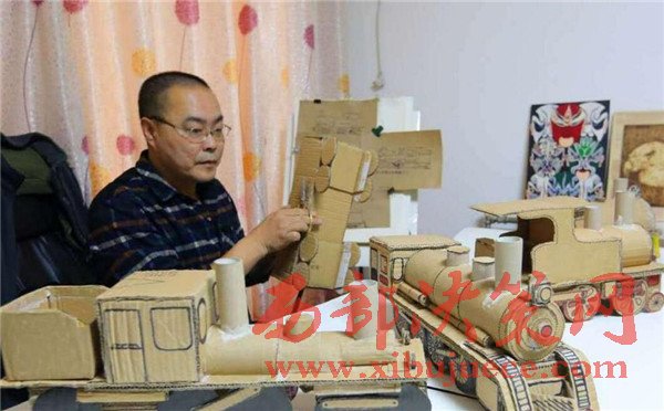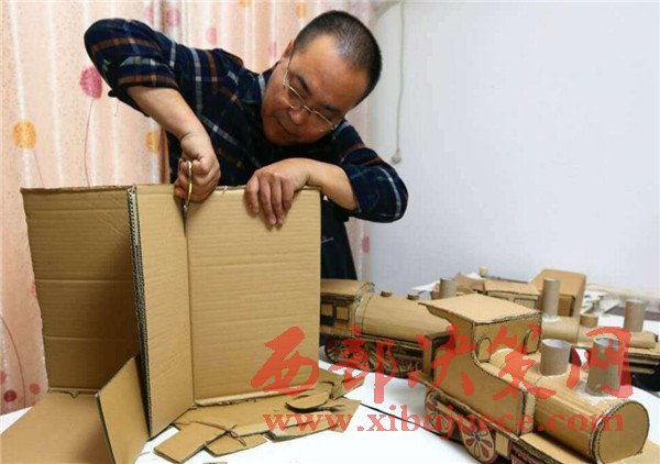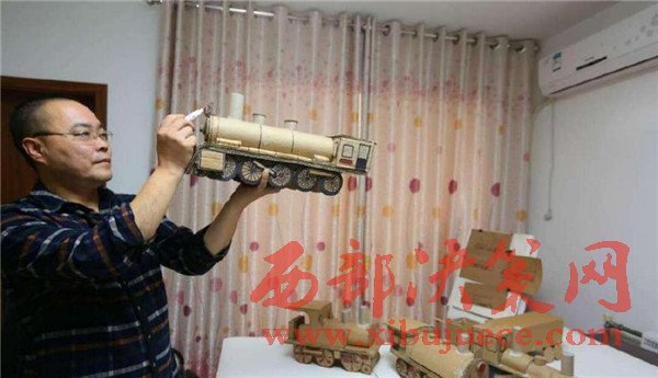 【廢舊紙箱變成精美的老式“蒸汽火車”】廢舊紙箱、紙盒能做什么呢?大多數(shù)人都會(huì)把它當(dāng)成廢品賣掉了,而市民王小龍卻變廢為寶地將其制作成了4個(gè)精美的老式“蒸汽火車”。11月20日,記者來到丈八北路附近的王小龍家中,剛下班的他顧不上休息,已經(jīng)在工作臺(tái)前做起微型“蒸汽火車”的車廂,已經(jīng)做好的4個(gè)微縮版的老式“蒸汽火車”醒目地?cái)[在桌子上,讓人眼前一亮。這些“蒸汽火車”全是用廢舊的紙箱、紙盒手工制作,司機(jī)室、鍋爐、煙囪、大燈、車輪等,樣樣都有。