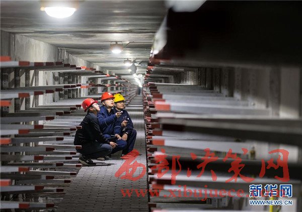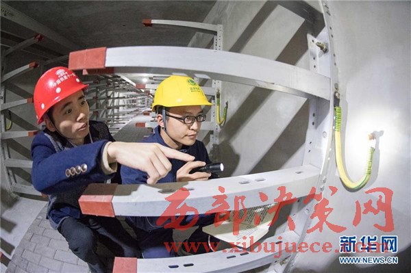 11月24日,解放碑地下環(huán)形電力隧道的一段支線(xiàn)電力隧道內(nèi),兩名國(guó)網(wǎng)重慶市區(qū)供電公司的技術(shù)人員(右一、右二)在對(duì)預(yù)留的商業(yè)用戶(hù)接入隧道的電力設(shè)施設(shè)備進(jìn)行竣工驗(yàn)收。當(dāng)日,經(jīng)過(guò)3年多的緊張建設(shè),重慶地下環(huán)形“電力高速路”——解放碑地下環(huán)形電力隧道工程順利通過(guò)竣工驗(yàn)收,并正式投入運(yùn)行。解放碑環(huán)形電力隧道總長(zhǎng)2408米,其中1198米的干線(xiàn)電力隧道已經(jīng)成功接入解放碑商圈及周邊地區(qū)的4個(gè)110千伏變電站形成環(huán)線(xiàn),支線(xiàn)電力隧道1210米也開(kāi)始陸續(xù)接入用戶(hù)。據(jù)介紹,作為重慶市重點(diǎn)工程,2013年7月開(kāi)工建設(shè)的解放碑地下環(huán)形電力隧道按照滿(mǎn)足未來(lái)20年電力需求設(shè)計(jì),隧道高2.8米、寬2.4米,投入運(yùn)行后將解決重慶渝中半島和重慶最繁華的解放碑商業(yè)區(qū)配電設(shè)施老化、無(wú)法擴(kuò)建等問(wèn)題,使解放碑商圈供電負(fù)荷承載能力得到極大加強(qiáng)。