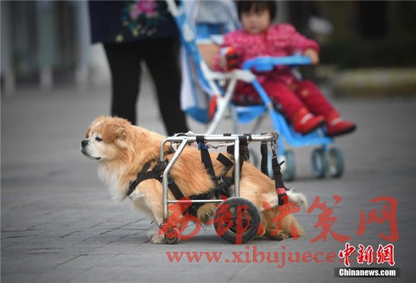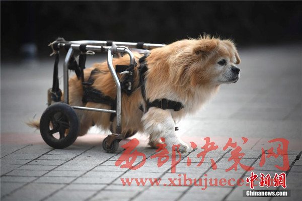 12月6日,重慶街頭一只半身殘廢的小狗依靠輪椅行走,吸引不少路人目光。