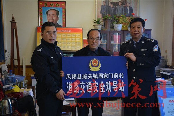 西部決策網(wǎng)訊(帥華鋒 李亮亮 通訊員 孟歡)12月8日,鳳翔交警大隊(duì)在鳳翔縣城關(guān)鎮(zhèn)豆腐村、糜桿橋鎮(zhèn)北水溝村、城關(guān)鎮(zhèn)周家門前三個(gè)村設(shè)立的農(nóng)村交通安全勸導(dǎo)站順利掛牌成立。首批勸導(dǎo)站是以村委會(huì)為依托,根據(jù)三個(gè)村的地貌、村落人群分散、道路里程較長等情況特點(diǎn),在鳳翔轄區(qū)公路沿線的3個(gè)行政村率先建立起勸導(dǎo)站示范點(diǎn)。
