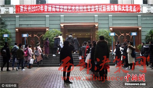 12月14日,重慶市,沙坪壩區(qū),重慶大學(xué)美視電影學(xué)院考點(diǎn),考生們走進(jìn)考場(chǎng)。當(dāng)天,重慶市2017年普高藝術(shù)類招生專業(yè)考試開考,考場(chǎng)外云集了大量夢(mèng)想明星生涯的美女帥哥以及前來陪伴的親朋好友。