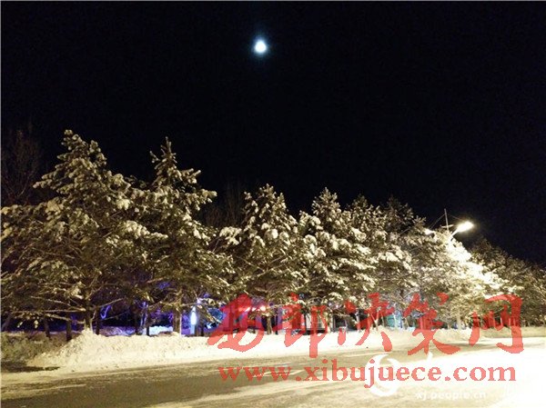 有“山水畫卷 生態(tài)邊城”美譽(yù)的新疆哈巴河縣環(huán)境良好、風(fēng)光優(yōu)美,就連風(fēng)雪彌漫之夜也如畫卷一般美麗迷人。