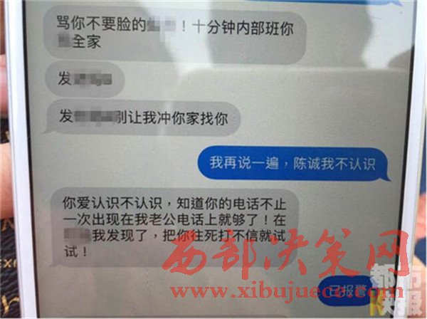 王女士說(shuō)自己今年三十多歲,而聽對(duì)方的聲音判斷,女孩大概20多歲,現(xiàn)在竟被小自己十歲的女孩錯(cuò)當(dāng)小三,實(shí)在滑稽可笑。而最讓王女士不能忍受的是,對(duì)方發(fā)來(lái)王女士的微信頭像照片,并發(fā)來(lái)短信說(shuō):這個(gè)是你吧,警告你別犯賤,再發(fā)現(xiàn)你倆聯(lián)系,下次就不是打電話了,見了你把你往死里打。