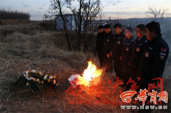 12月8日,府谷縣公安局警犬訓(xùn)導(dǎo)隊警犬“湯姆”在府谷縣新民鎮(zhèn)執(zhí)行安全隱患排查任務(wù)回到駐地進(jìn)食后出現(xiàn)腹部膨脹的狀況,經(jīng)犬醫(yī)醫(yī)治無效于當(dāng)晚死亡。12月9日,府谷縣公安局警犬訓(xùn)導(dǎo)隊警察為這個“特殊的戰(zhàn)友”舉行了簡樸的葬禮,他們“愿無言的戰(zhàn)友,一路走好。”