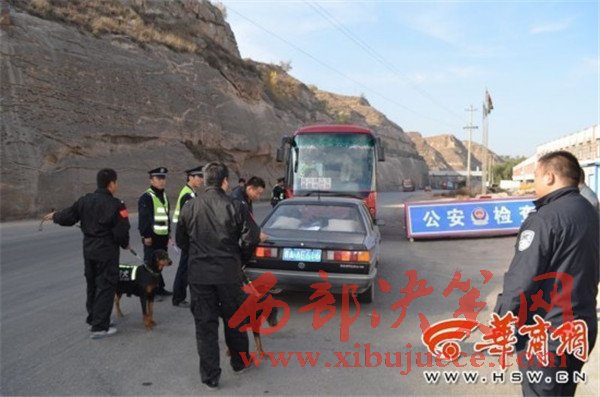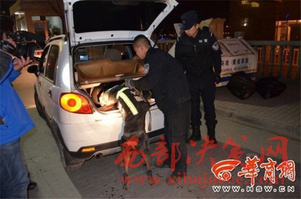 府谷縣公安局警犬訓(xùn)導(dǎo)隊帶領(lǐng)警犬上街巡邏