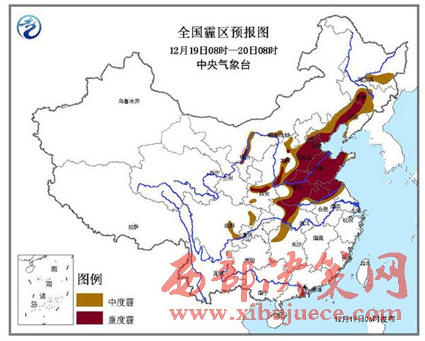 中央氣象臺(tái)預(yù)計(jì),19日08時(shí)至20日08時(shí),北京中南部、天津、河北中南部、山西中南部、山東大部、河南大部、陜西關(guān)中、湖北西部、蘇皖北部、遼寧中西部、吉林中部等地有中度霾,其中,北京南部、天津、河北中南部、河南中北部、山東大部、山西南部、陜西關(guān)中、湖北西部、蘇皖北部、遼寧中部、吉林中部等地的部分地區(qū)有重度霾,最低能見度為1公里左右。中央氣象臺(tái)12月19日06時(shí)繼續(xù)發(fā)布霾橙色預(yù)警。
