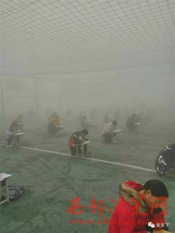 林州市教育體育局在12月19日上午就向全市各級(jí)各類學(xué)校下發(fā)通知,各中小學(xué)、幼兒園從12月19日中午12:00起開始停課,待紅色預(yù)警解除后恢復(fù)上課。既然空氣已經(jīng)處于嚴(yán)重污染狀態(tài),教體局已下發(fā)停課通知,臨淇鎮(zhèn)一中為何還要組織學(xué)生在露天的操場(chǎng)上進(jìn)行考試?該校馮校長告訴記者,他們學(xué)校當(dāng)天并沒有組織學(xué)生在外面考試,但是12月19日上午,他們確實(shí)組織學(xué)生在外面考試了,當(dāng)時(shí)這里的霧霾沒有那么嚴(yán)重。