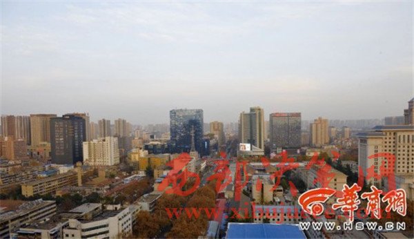 12月21日,連日霧霾的西安,經(jīng)過(guò)一場(chǎng)小雨空氣質(zhì)量明顯改善。下午5時(shí)許,在子午路一高層向東南方向望去,天空放晴,久違的藍(lán)天白云讓人心情大好。