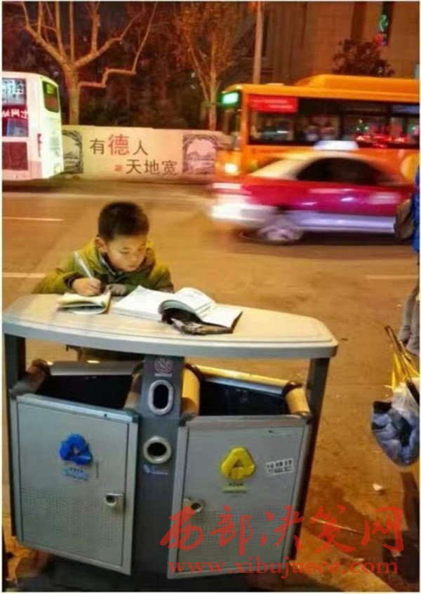 原標(biāo)題:寒夜中 這個(gè)8歲男孩趴在垃圾桶上寫(xiě)作業(yè)