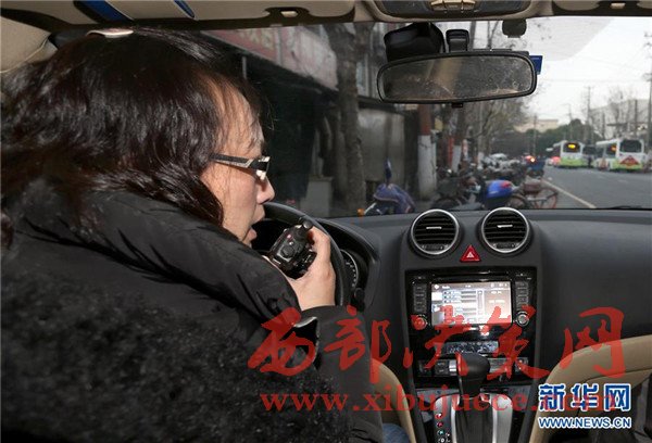 1月12日,上海市閔行公安分局刑偵支隊街面犯罪偵查隊反扒組組長姜峻在蹲守的車上用電臺呼叫隊員。