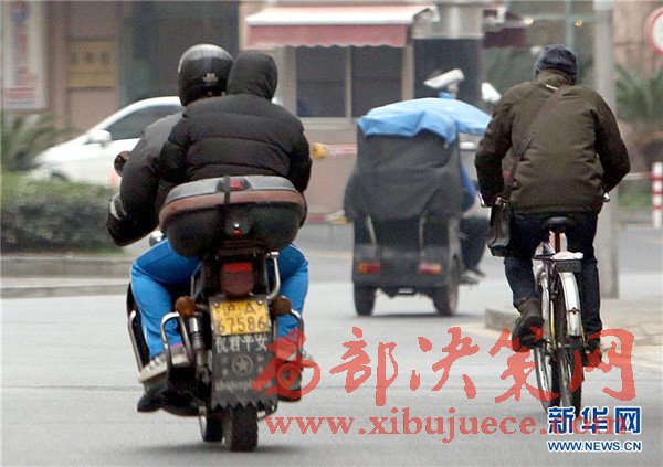 1月12日,反扒隊員乘坐摩托車跟蹤扒竊嫌疑人乘坐的電動三輪車。