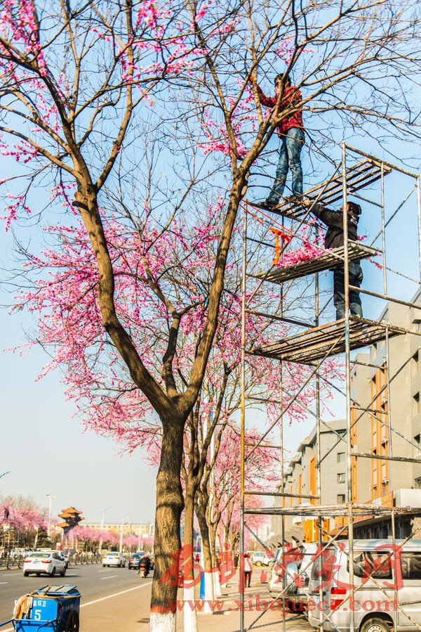 1月16日,在呼和浩特市大南街,工人們正在安裝花燈。農(nóng)歷丁酉年(雞年)春節(jié)即將到來,首府處處年味十足,扮靚城市。