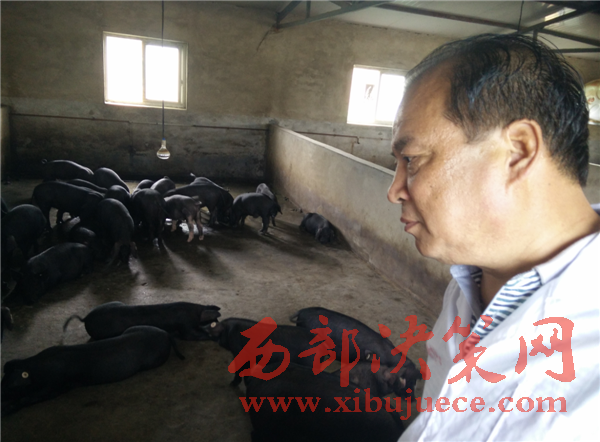 面對山區(qū)群眾種植單一,產(chǎn)業(yè)發(fā)展后勁不足的問題,老何和工作隊員們一起,深入調(diào)查研究,積極探索,提出了“龍頭企業(yè)+合作社+基地+貧困戶”的產(chǎn)業(yè)扶貧模式,決定在背陰村發(fā)展黑豬養(yǎng)殖。目標定了,關(guān)鍵在落實。為此,老何積極奔走在合作社、龍頭企業(yè)之間,穿梭在群眾家中給貧困戶鼓勁加油、說服群眾搞養(yǎng)殖,為實現(xiàn)“龍頭企業(yè)+合作社+基地+貧困戶”的產(chǎn)業(yè)扶貧模式發(fā)揮了橋梁紐帶作用,實現(xiàn)各方的滿意。一切就緒,只等豬仔到位。老何第一時間趕到榆林聯(lián)系豬仔,連夜拉回了帶著致富夢想的關(guān)中黑豬300余頭。拉回黑豬已經(jīng)是凌晨五點了,他激動的在朋友圈給群眾送上這一好消息。2016年5月12日,也就是拉回黑豬的五個小時后,耀州區(qū)〝惠民一卡通〞扶貧貼息貸款發(fā)放儀式暨產(chǎn)業(yè)脫貧工作推進會瑤曲鎮(zhèn)背陰村召開,李志強副市長出席了會議,并在講話中高度肯定了耀州區(qū)精準扶貧工作,尤其對耀州區(qū)財政局在產(chǎn)業(yè)扶貧,精準脫貧方面的工作和創(chuàng)新模式給予高度評價。這一天300頭關(guān)中黑豬幼崽投放背陰村養(yǎng)殖基地,標志著關(guān)中黑豬正式在背陰村扎根落戶,成為貧困戶增收致富的希望所在,預(yù)計每頭黑豬要群眾增收 2000多元,帶頭50多戶群眾當年實現(xiàn)脫貧。在發(fā)放儀式結(jié)束后,老何和他帶領(lǐng)的扶貧隊員指導(dǎo)貧困戶養(yǎng)殖黑豬的致富之路才邁出了第一步。為此,積極協(xié)調(diào)鎮(zhèn)村兩級、石羊集團、雙富專業(yè)合作社,指導(dǎo)養(yǎng)殖技術(shù),簽訂購銷合同,爭取財政惠民補貼一卡通扶貧貼息貸款,為貧困戶養(yǎng)殖黑豬致富脫貧提供全過程、全方位的服務(wù)。經(jīng)??匆娝纳碛俺霈F(xiàn)在背陰村的群眾家中,出現(xiàn)在黑豬養(yǎng)殖的圈舍里,特別是穿著白大褂指導(dǎo)群眾養(yǎng)殖黑豬技術(shù)的樣子是那么用心、那么的專注。