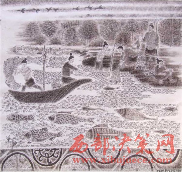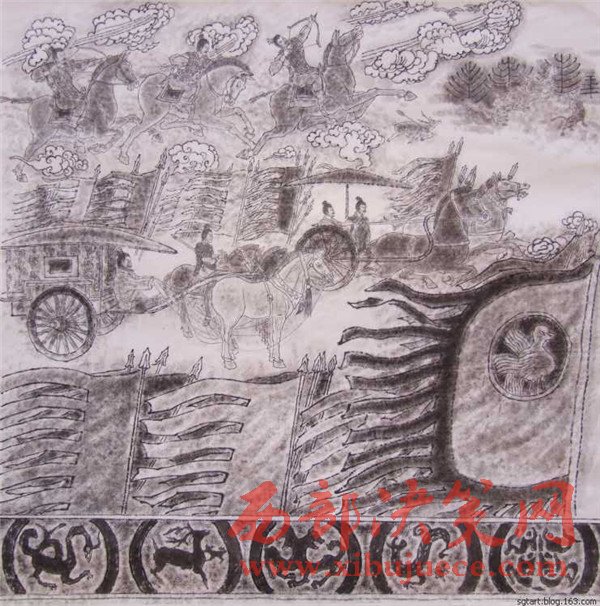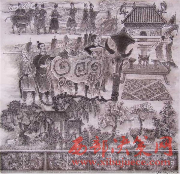 曹老經(jīng)過深思熟慮后1989年作出第一幅石鼓畫像,但他并不滿意。石鼓文的博大精深、源遠(yuǎn)流長豈能是他輕易能描繪得出來的!他覺得自己還沒有吃準(zhǔn)石鼓文的深邃含義。他明白:淺薄自滿是藝術(shù)的致命傷,能對自己自省和不滿的人,才會創(chuàng)作出能經(jīng)得起時間和歷史檢驗的藝術(shù)佳作。曹老痛下心撕了又畫,兩易其稿后,心里還不踏實,他必須尋找“最為挑剔的眼睛”。于是,他帶著十幅畫作,趕赴京城,讓石鼓專家鑒定審核。果不其然,專家們給他指出了一些問題:畫的時間不對,人物衣著不符合朝代特征。曹老虛心聽取了專家的意見,他返回寶雞,廢棄了原稿,重新考證人物的歷史特征,生活細(xì)節(jié)的一點(diǎn)一滴。他為了能精確地描繪先秦時期的人物和服飾,甚至每一件物件、器皿、圖案,他借來了秦兵馬俑博物館的圖像和資料,依據(jù)兵馬俑中人物的衣著打扮,紋飾車馬,2000年之后,第三次拿起筆重新準(zhǔn)確地描繪出了十面石鼓中的眾多人物、眾多民俗風(fēng)情。為了讓《石鼓文圖》經(jīng)受更嚴(yán)格的“審批”,曹老并沒有急于發(fā)表,而是連續(xù)奔波了幾年,直到2007年終于定稿與世人見面。