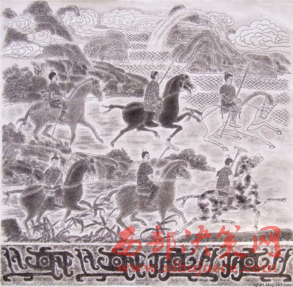 “永不滿足是前進(jìn)的動力”。為了更直觀地表達(dá)石鼓文,他發(fā)揮自己書畫的藝術(shù)天賦,潛心研究,又創(chuàng)作出了十幅《石鼓文圖》。它以中國傳統(tǒng)繪畫形式每幅畫于八尺宣紙,各件既是單幅作品,又互相關(guān)聯(lián),洋洋巨著,連接在一起近乎三丈,氣勢恢弘,再現(xiàn)了十面石鼓的原始?xì)v史景象,再現(xiàn)了先秦時期政治、軍事和民眾生活、飛禽走獸和自然風(fēng)光。對人們了解、研究先秦歷史必將產(chǎn)生積極的輔助作用。