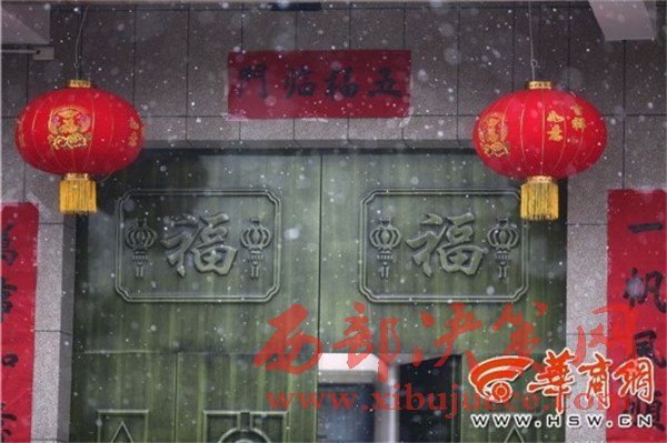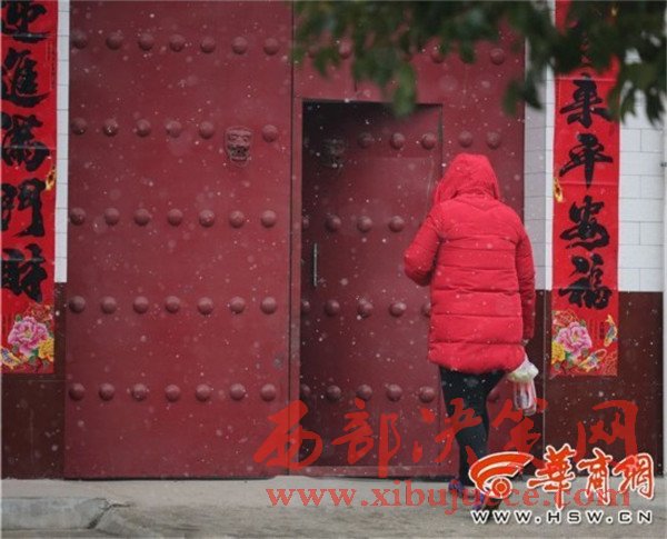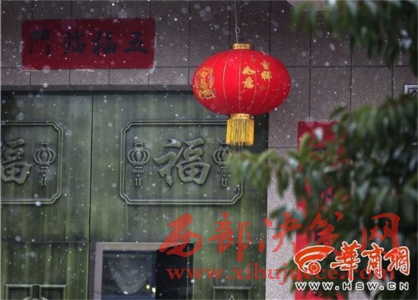在高陵區(qū)一家農(nóng)戶(hù)門(mén)口,瑞雪與燈籠、對(duì)聯(lián)相應(yīng),也有了過(guò)年的氣氛。
