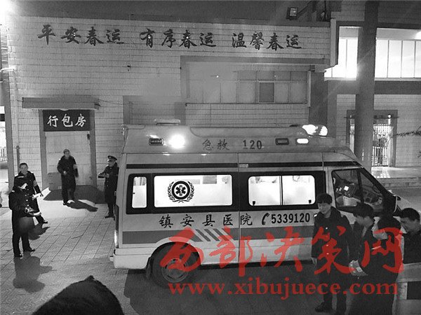2月4日19時55分,重慶北開往呼和浩特東的K1536次緩緩地進站停妥,如同往常一樣,站臺的工作人員有條不紊地組織著K1536次旅客乘降工作。“西安端乘降完畢……等等,1號,K1536次1號臥鋪車廂列車員要交個病人下車醫(yī)治,是個孕婦,你過來下”!當班的客運值班員王麗英,從站臺中部邊奔跑著,邊詢問了解情況。正在站臺盯控值班的黨總支書記趙鵬、車站站長何曉輝、安全員呂建軍、客運主任冀文娟立即緊隨上前了解情況,隨即通知客運員許劍鋒立即撥打120,詳細告知情況,安排好隨車醫(yī)護人員,并安排站臺工作人員準備好椅子、被褥等簡單的輔助用品。將兩名旅客接下,等待救護車的時候了解到,丈夫譚超、妻子鐘紅英都是重慶人,妻子已經(jīng)懷孕8個多月,預產(chǎn)期在2月20日左右,帶著2歲半的大兒子,原計劃坐火車從重慶到寶雞生產(chǎn),沒想到剛到鎮(zhèn)安站停車期間突然感到身體不適,有臨盆現(xiàn)象,不得已才要求下車。