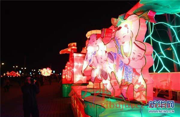 2月9日,游客在傳統(tǒng)元宵燈會(huì)上觀(guān)賞花燈。元宵佳節(jié)臨近,河北省霸州市第三十二屆勝芳傳統(tǒng)元宵燈會(huì)吸引眾多游客賞燈游玩。