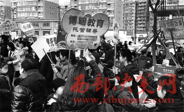 12時,曲江二小門口,有很多托管班的工作人員舉著牌子,記者粗略數(shù)了一下,牌子有30多個。