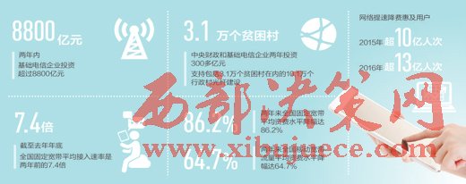 陳肇雄介紹,兩年來,工信部會同有關(guān)部委,扎實推進網(wǎng)絡(luò)提速降費相關(guān)工作落實。圍繞網(wǎng)絡(luò)提速,一是深入推進寬帶中國戰(zhàn)略。兩年內(nèi)基礎(chǔ)電信企業(yè)投資超過8800億元,國家發(fā)改委安排中央預(yù)算內(nèi)投資10億元,專項建設(shè)基金480億元,建成了全球規(guī)模最大的固定光纖和移動4G網(wǎng)絡(luò)。二是加快實施電信普遍服務(wù)。中央財政和基礎(chǔ)電信企業(yè)兩年投資300多億元,支持包括3.1萬個貧困村在內(nèi)的10.1萬個行政村光纖建設(shè)。三是優(yōu)化互聯(lián)網(wǎng)骨干網(wǎng)網(wǎng)絡(luò)結(jié)構(gòu)。擴容骨干網(wǎng)網(wǎng)間互聯(lián)帶寬1562G,新增3個互聯(lián)網(wǎng)骨干直聯(lián)點,總數(shù)達到了13個。截至2016年年底,全國固定寬帶平均接入速率達到49M,是兩年前的7.4倍。光纖寬帶用戶占比從34.1%提升到76.6%,進入全球前三位。根據(jù)中國寬帶聯(lián)盟發(fā)布的數(shù)據(jù),我國移動寬帶網(wǎng)絡(luò)用戶平均體驗速率已經(jīng)從3G的3.9M提升到目前4G的11.9M。4G用戶已經(jīng)達到7.7億戶,占全球4G用戶的一半以上。