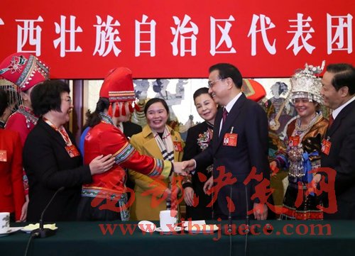 【李克強(qiáng)在廣西團(tuán)巧借“劉三姐”祝福全國女同胞】三八婦女節(jié)這天,李克強(qiáng)來到廣西代表團(tuán)參加審議報(bào)告。他首先祝在場的女代表及女同胞節(jié)日快樂??偫碚f:“廣西是劉三姐的家鄉(xiāng),她的歌聲至今余音繚繞,代表了女同胞美好的形象。我在這里向你們,并通過你們向全國女同胞致以節(jié)日的問候和衷心的祝福。”