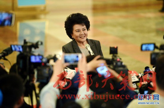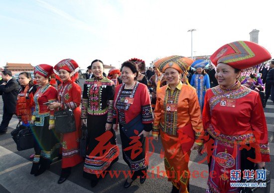 3月7日,全國人大代表申紀(jì)蘭(左)和郭鳳蓮準(zhǔn)備參加十二屆全國人大五次會(huì)議山西代表團(tuán)的會(huì)議。在兩會(huì)會(huì)場(chǎng)內(nèi)外,女代表、女委員、女工作人員、女記者在工作中盡職盡責(zé),展現(xiàn)著自己的風(fēng)采。