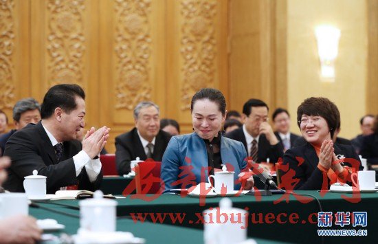 3月7日,遼寧代表團(tuán)的馮玉萍代表(前中)在發(fā)言時(shí)激動(dòng)不已。在兩會(huì)會(huì)場(chǎng)內(nèi)外,女代表、女委員、女工作人員、女記者在工作中盡職盡責(zé),展現(xiàn)著自己的風(fēng)采。