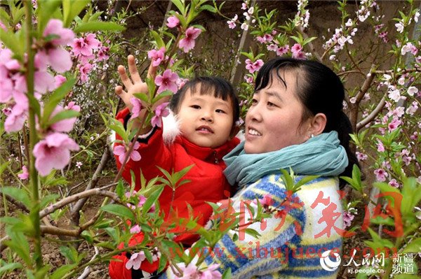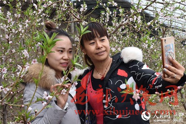 在新疆生產(chǎn)建設(shè)兵團(tuán)第五師八十六團(tuán)一溫室大棚里,桃花盛開,春意盎然,一游客帶著孩子正在觀賞桃花。目前,桃花迎來了盛花期,吸引了周邊游客前來賞花、拍照,感受春天的氣息。