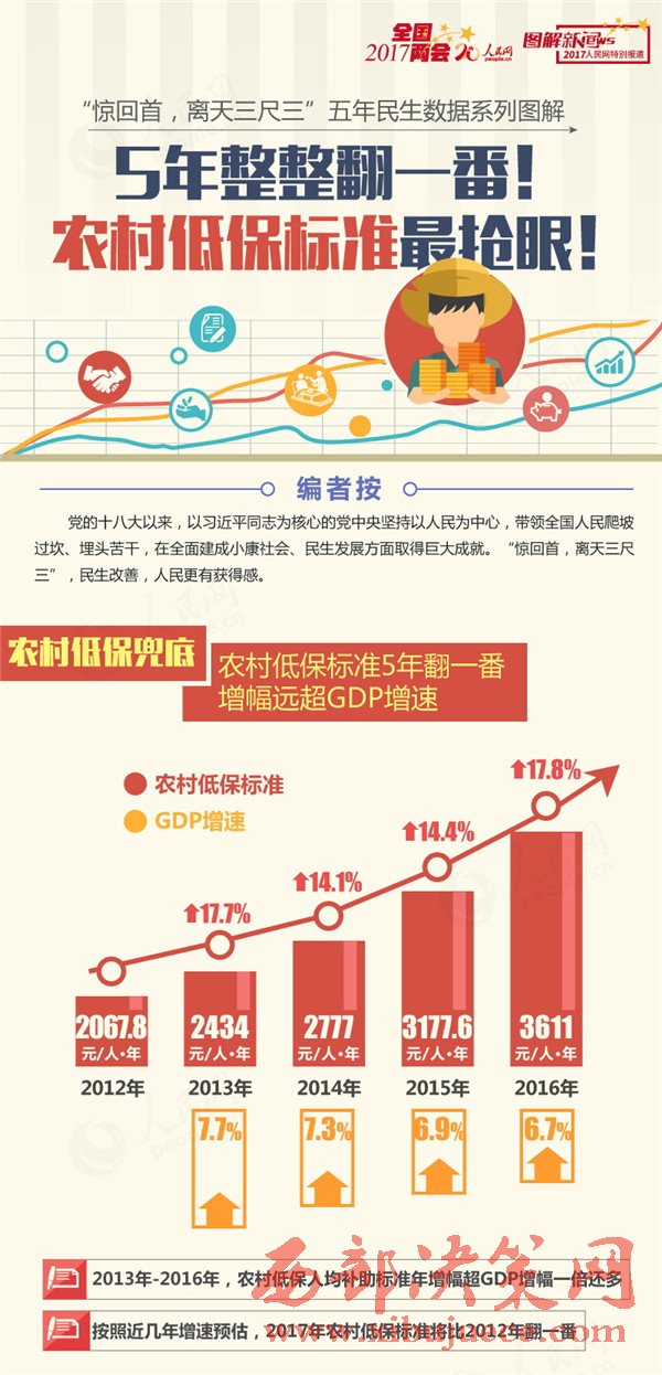 五年翻一番農(nóng)村低保增幅遠(yuǎn)超GDP增速