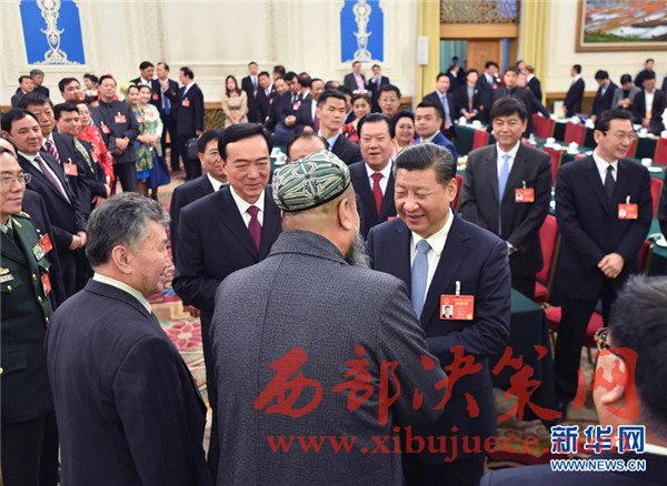 2017年3月10日,習(xí)近平在新疆代表團(tuán)參加審議時(shí)說,要全面貫徹黨的民族政策,高舉各民族大團(tuán)結(jié)旗幟,引導(dǎo)各族群眾增強(qiáng)對(duì)偉大祖國、中華民族、中華文化、中國共產(chǎn)黨、中國特色社會(huì)主義的認(rèn)同,像愛護(hù)自己的眼睛一樣愛護(hù)民族團(tuán)結(jié),像珍視自己的生命一樣珍視民族團(tuán)結(jié),像石榴籽那樣緊緊抱在一起。