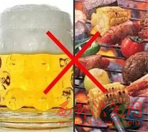 啤酒+腌熏燒烤食物有致癌或誘發(fā)消化道疾病的可能。