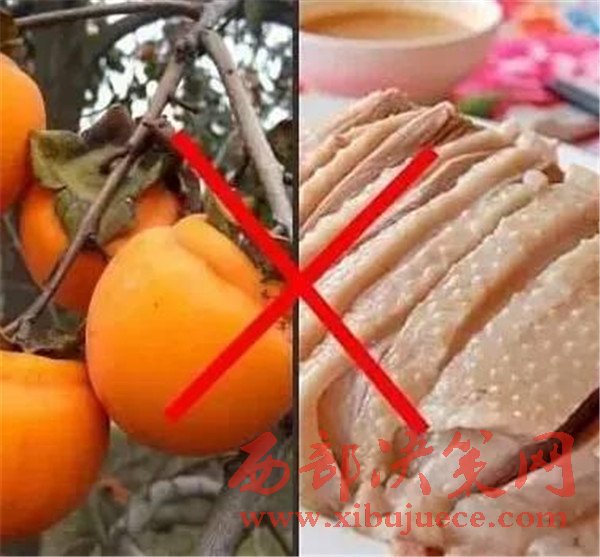 鵝肉+柿子嚴(yán)重會(huì)導(dǎo)致死亡。