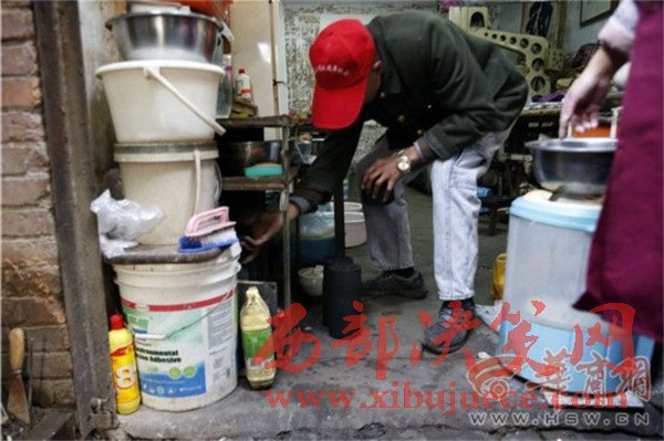 一進(jìn)門,看見61歲的夏平安坐在門房里,端著個(gè)大老碗正在吃面。華商報(bào)記者問(wèn):“自己做的面?”他停止吃面,頭一抬,慢慢地說(shuō):“老板做的。”他待的是煤場(chǎng)門房,也是他的宿舍,屋子里靠墻擺著一張單人床,上面鋪著厚厚的被褥。院子里堆了好多已經(jīng)打好的煤球。