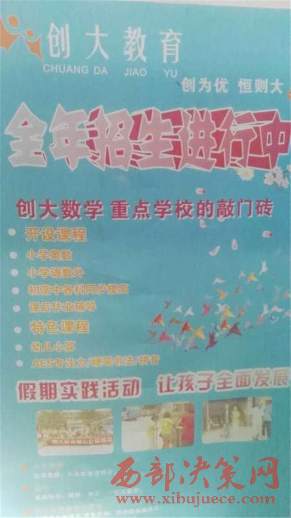 家長為了讓孩子能全面發(fā)展,常年穿梭于各類興趣、輔導(dǎo)班而樂此不疲。有的家長為了讓孩子上個好學校,托熟人、找關(guān)系,掏天價送孩子上所謂的名優(yōu)輔導(dǎo)機構(gòu),而實際上實屬無奈,敢恨不敢言,這一現(xiàn)象不得不讓人深思……!實際情況到底怎樣?本社工作人員根據(jù)群眾反映近期對一家名為“創(chuàng)大教育”的輔導(dǎo)班進行實地了解,結(jié)果讓人大跌眼鏡。
