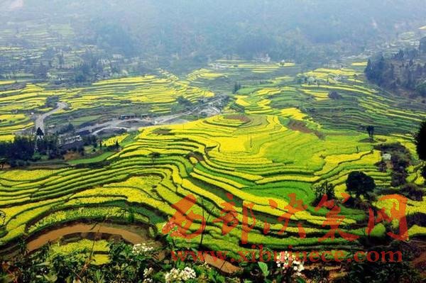 錯落有致的油菜花田。猶如一片金黃燦燦、隨風(fēng)翻涌的海洋,又如一塊黃綠相間、層次分明的地毯。