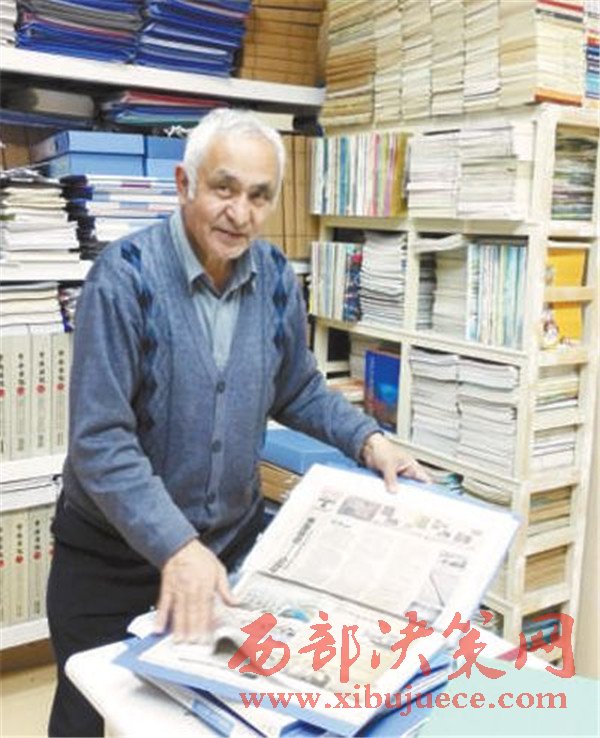 “不看書不看報的家庭不是完整的家庭。”退休前,阿地里的這些“寶貝”都放在自己幾十平方米的家里。“我家里沒有書房、書桌,只有一個長條桌用來擺放當(dāng)天要看的書報,但家里到處都是書柜,地方太小,后來把沙發(fā)都搬出去了。”阿地里告訴記者,這些年光買書、訂閱報刊等就花費了30多萬元。
