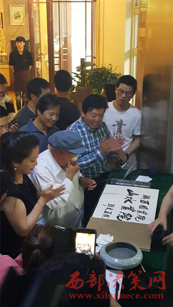 當(dāng)李老師談起書法來,兩眼炯炯有神,自放異彩,書法已融入他的生命。當(dāng)我們走進(jìn)李老師的工作室,練習(xí)的作品如一座小山,筆架上的毛筆各種型號(hào)應(yīng)有盡有,裝墨汁的缽盂,很是夸張,不敢說墨池,那樣有點(diǎn)浮夸,有點(diǎn)像關(guān)中人吃面的老碗那樣大的缽盂。沒有上過大學(xué)的他,也許是對(duì)傳統(tǒng)文化的摯愛,也許是身邊的朋友影響了他。