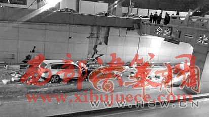 原標題:西安男子酒后開車掉進含光門隧道差點砸中出租車