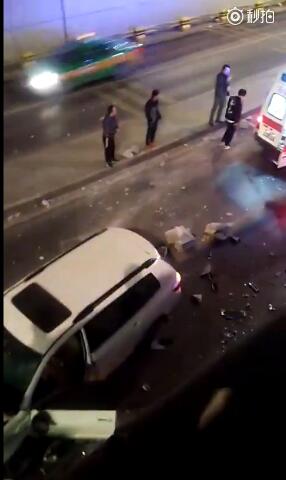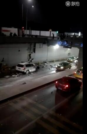 凌晨時分,隧道上方突然有一輛越野車撞斷護欄墜入隧道,翻滾后逆向停了下來,車內司機和兩名女孩受傷。